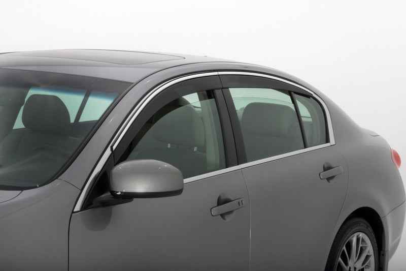Lowest profile Ventvisor or side window deflector on the marketOur Low Profile Ventvisor or side window deflector is made in the USA, precision-engineered for an exacting fit with the broadest range of vehicle coverage on the market today. AVS Low Profile Ventvisors are designed to complete the look of your vehicle, adding subtle style while maintaining the functionality you desire from a side window deflector. The customized design easily mounts in minutes to the outside of your vehicle using pre-applied 3M automotive-grade adhesive. Its quick no-drill installation creates a perfectly snug and secure fit ? completely safe for car washes too!Keeps fresh air in and the rain out with styleThe Ventvisor, also referred to as a side window deflector, window shade or rain guard, allows fresh air to naturally circulate through open windows while keeping the rain out. Additionally, the product keeps the sun out of your eyes, enables fresh air circulation to eliminate stale, smoky air and allows you to keep your window cracked while parked, keeping the interior cooler.Great coverage and quality manufacturingAVS offers the most comprehensive Ventvisor vehicle application coverage for trucks, SUVs, CUVs, vans and passenger cars. All AVS Ventvisors are made of a higher-grade material than most, which means they hold their shape and are just the right thickness to be strong yet flexible for a perfect fit.& AVS Low Profile Ventvisors are available in a dark smoke and matte black finishes, and come with chrome trim on select models that match the trim of the vehicle door.& Best-selling line and backed by Limited Lifetime WarrantyThe AVS Ventvisor line is the best-selling line throughout North America. A Limited Lifetime Warranty protects your AVS Low Profile Ventvisor Side Window Deflector. Get a set today and start enjoying exterior style and constant fresh air right away.