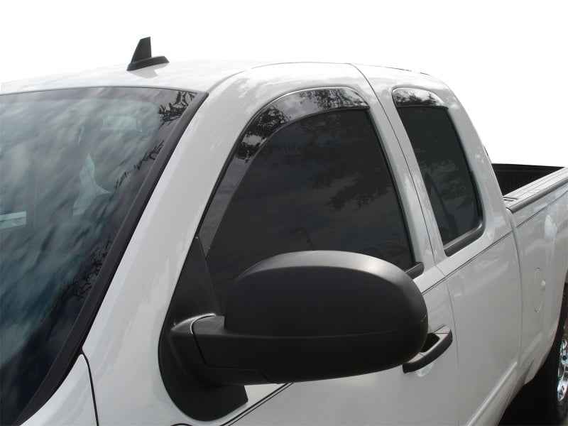 Lowest profile Ventvisor or side window deflector on the marketOur Low Profile Ventvisor or side window deflector is made in the USA, precision-engineered for an exacting fit with the broadest range of vehicle coverage on the market today. AVS Low Profile Ventvisors are designed to complete the look of your vehicle, adding subtle style while maintaining the functionality you desire from a side window deflector.& Its quick no-drill installation creates a perfectly snug and secure fit ? completely safe for car washes too!Keeps fresh air in and the rain out with styleThe Ventvisor, also referred to as a side window deflector, window shade or rain guard, allows fresh air to naturally circulate through open windows while keeping the rain out. Additionally, the product keeps the sun out of your eyes, enables fresh air circulation to eliminate stale, smoky air and allows you to keep your window cracked while parked, keeping the interior cooler.Great coverage and quality manufacturingAVS offers the most comprehensive Ventvisor vehicle application coverage for trucks, SUVs, CUVs, vans and passenger cars. All AVS Ventvisors are made of a higher-grade material than most, which means they hold their shape and are just the right thickness to be strong yet flexible for a perfect fit.Best-selling line and backed by Limited Lifetime WarrantyThe AVS Ventvisor line is the best-selling line throughout North America. A Limited Lifetime Warranty protects your AVS Low Profile Ventvisor Side Window Deflector. Get a set today and start enjoying exterior style and constant fresh air right away.