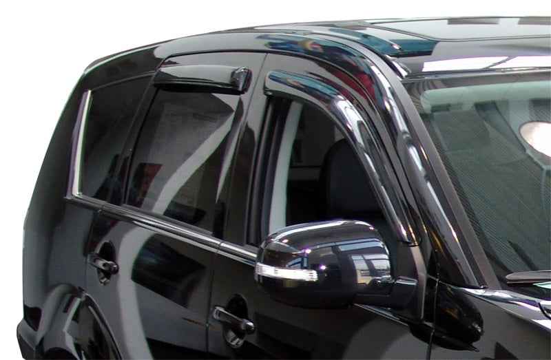 AVS invented the Ventvisor and offers the most vehicle coverageOur “Original” signature Ventvisor Side Window Deflector is made in the USA and precision-engineered for an exacting fit to the broadest range of vehicles on the market today. AVS Original Ventvisor?s customized design mounts in minutes to the outside of your vehicle using pre-applied 3M automotive-grade adhesive applied above and around your windows. It?s a quick, no-drill installation to create a perfectly snug and secure fit ? completely safe for car washes too!Keeps fresh air in and the rain outThe Ventvisor, also referred to as a side window deflector, window shade or rain guard, allows fresh air to naturally circulate through open windows while keeping the rain out. Additionally, the product keeps the sun out of your eyes, enables fresh air circulation to eliminate stale, smoky air and allows you to keep your window cracked while parked, keeping the interior cooler. Now, you can truly enjoy the fresh air and whatever nature sends your way!Great coverage and quality manufacturingAVS offers the most comprehensive Ventvisor vehicle coverage for trucks, SUV?s, CUV?s, vans and passenger cars. All AVS Ventvisors are made of a higher-grade acrylic material than most, which means they hold their shape and are just the right thickness to be strong yet flexible for a perfect fit.& Best-selling line and backed by Lifetime WarrantyThe AVS Ventvisor line is the best-selling line throughout North America. A Lifetime Warranty protects your AVS Original Ventvisor Side Window Deflector. Get a set today and start enjoying exterior style and constant fresh air right away!