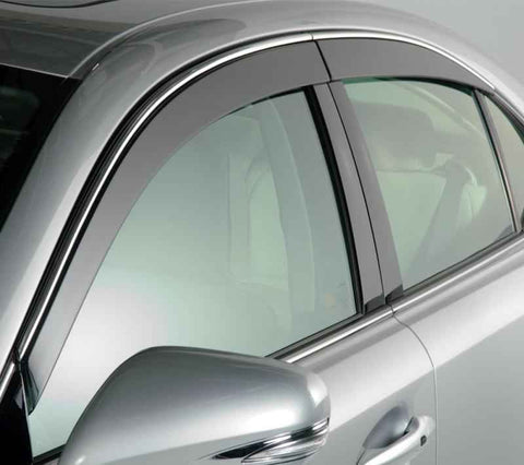 Lowest profile Ventvisor or side window deflector on the marketOur Low Profile Ventvisor or side window deflector is made in the USA, precision-engineered for an exacting fit with the broadest range of vehicle coverage on the market today. AVS Low Profile Ventvisors are designed to complete the look of your vehicle, adding subtle style while maintaining the functionality you desire from a side window deflector. The customized design easily mounts in minutes to the outside of your vehicle using pre-applied 3M automotive-grade adhesive. Its quick no-drill installation creates a perfectly snug and secure fit ? completely safe for car washes too!Keeps fresh air in and the rain out with styleThe Ventvisor, also referred to as a side window deflector, window shade or rain guard, allows fresh air to naturally circulate through open windows while keeping the rain out. Additionally, the product keeps the sun out of your eyes, enables fresh air circulation to eliminate stale, smoky air and allows you to keep your window cracked while parked, keeping the interior cooler.Great coverage and quality manufacturingAVS offers the most comprehensive Ventvisor vehicle application coverage for trucks, SUVs, CUVs, vans and passenger cars. All AVS Ventvisors are made of a higher-grade material than most, which means they hold their shape and are just the right thickness to be strong yet flexible for a perfect fit.& AVS Low Profile Ventvisors are available in a dark smoke and matte black finishes, and come with chrome trim on select models that match the trim of the vehicle door.& Best-selling line and backed by Limited Lifetime WarrantyThe AVS Ventvisor line is the best-selling line throughout North America. A Limited Lifetime Warranty protects your AVS Low Profile Ventvisor Side Window Deflector. Get a set today and start enjoying exterior style and constant fresh air right away.