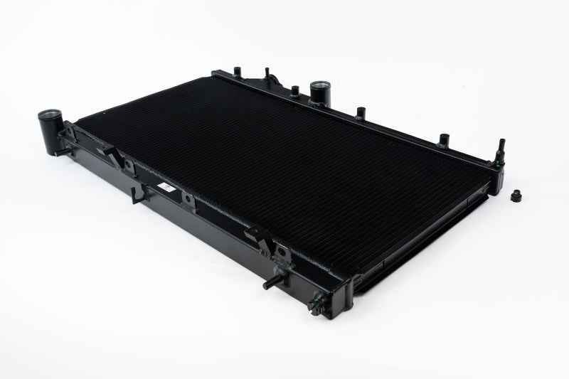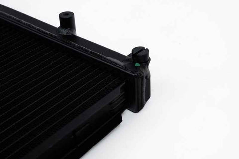 CSF has over 5 decades of experience manufacturing radiators. So when it comes to keeping your engine cool and your WRX/STI running at its best, a CSF High-Performance All-Aluminum Radiator is the obvious choice. Designed to perform on the street or at the track, a performance radiator is a must-have for both high horsepower builds as well as race vehicles which need added cooling performance in motorsports environments. This radiator features a 2-Row core with CSF?s exclusive B-Tube Technology: Unlike a regular oval shape "O" type radiator tube, CSF uses a specially engineered tube in the shape of a "B". These "B-tubes" are carefully formed and then brazed over the seam to seal. CSF is able to use thinner and lighter aluminum material (with better cooling efficiency) because this design is actually stronger than normal "O" shape tubes that are welded. The design (inlet in the middle of the tube that is seam brazed) increases the heat transfer surface area of the tubes by approximately 15% over regular tubes ? producing the efficiency of two smaller tubes vs. one large tube within the same space criteria. With "B-tubes" you are able to get "dual liquid laminar flow". CSF also uses ultra efficient multi louvered fins that are carefully and precisely aligned to maximize airflow through each radiator core. Fin specifications are carefully measured and calculated for each application, and tested for maximum heat rejection efficiency in our wind-tunnel lab.The CSF WRX/STI radiator is a true "Drop-in fit" design requiring no modifications to install. OE style brackets are all CNC machined and welded for the best durability possible. Inlet/Outlet connections are designed to match the OE connections so you can reuse OEM hoses or aftermarket. Trust the cooling experts at CSF for the best performing, highest-quality, and most reliable radiators.