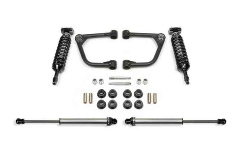 These arms eliminate upper ball joints w/ super strong 1'' ID Stainless American Uniballs. Additional caster is built into Arms for greater align ability to help with problematic leveling kit alignments. Allows for increased wheel travel using Dirt Logic 2.5 Stainless Steel Coilover shocks. Chromoly tubing reduces flex found in stock arms for more positive road feel. 4340 Heat treated Uniball pin fits into factory ball joint taper without modification to the spindle for easy return to stock feature. Arms are direct replacements for factory arms on suspensions that require additional strength and align ability. Material Construction Specs. Built with same materials as found on Trophy Trucks. .120'' Wall 4130 Chromoly Tubing. 1.25'' OD. .250'' wall DOM Bushing Barrels. 1'' ID Stainless Steel American Uniball. 17-4 Stainless Misalignments. Heat Treated 4340 Tapered Uniball Pins. Includes rear 2.25 Dirt Logic Stainless Steel shocks.