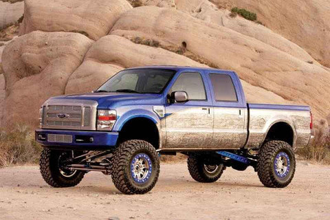 At the top of our Super Duty line is our famous 4 Link System that provides unsurpassed articulation and wheel travel. Large 2'' diameter heavy wall links feature race style 1'' Uniballs for superior strength. Thick 1/4'' steel brackets secure the 4 Links to the frame without cutting or welding. This 4 Link system includes our replacement Coil Springs. The system also includes Sway Bar drops, Trac Bar relocation bracket, Pitman Arm, replacement rear Leaf Springs, and a Block & U-bolt kit. Includes front and rear 2.25 Dirt Logic Stainless Steel shocks.