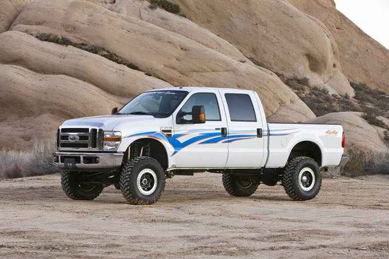 For the ultimate in suspension performance for the Super Duty we offer a bolt on 4 Link System that provides unsurpassed articulation and wheel travel. These 2'' diameter heavy wall links feature race style 1'' Uniballs for superior strength. Thick 1/4'' steel brackets secure the 4 Links to the frame without cutting or welding. This 4 Link system allows the use of our replacement Coil Springs. The system also includes Sway bar drops, Trac Bar relocation bracket, Pitman Arm, and a rear Block & U-Bolt kit.