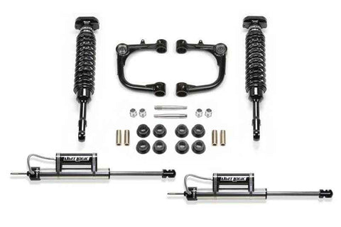 These arms eliminate upper ball joints w/ super strong 1'' ID Stainless American Uniballs. Additional caster is built into Arms for greater align ability to help with problematic leveling kit alignments. Allows for increased wheel travel when used with Dirt Logic 2.5 Stainless Steel Coilover shocks. Chromoly tubing reduces flex found in stock arms for more positive road feel. 4340 Heat treated Uniball pin fits into factory ball joint taper without modification to the spindle for easy return to stock feature. Arms are direct replacements for factory arms on suspensions that require additional strength and align ability. Material Construction Specs. Built with same materials as found on Trophy Trucks. .120'' Wall 4130 Chromoly Tubing. 1.25'' OD. .250'' wall DOM Bushing Barrels. 1'' ID Stainless Steel American Uniball. 17-4 Stainless Misalignments. Heat Treated 4340 Tapered Uniball Pins. Includes rear 2.25 Dirt Logic Stainless Steel resivior shocks.