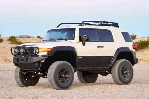 Fabtech's FJ system features extended length steering knuckles attaching to one piece lower control arm crossmembers for a full 6 inches of lift to clear 35'' tires. Front lower crossmembers feature adjustable alignment cams along with an integrated 1/4'' thick steel differential skid plate. The Basic system retains the front strut assembly for a smooth highway ride with ease of installation. The Basic rear suspension systems include tubular upper and lower link arms, utilizing the stock rear coil springs for a supple highway ride with excellent offroad articulation. Installation does not require relocation of the Rack and Pinion or disassembly of the front strut assemblies. The stock front and rear driveshafts are retained due to Fabtech's precise suspension geometry.