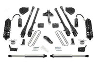 Fabtech?s 6? 4 Link Conversion system for the Ford F450 and F550 Super Duty is built to handle the on and offroad demands of the truck enthusiast. This vehicle?s suspension is more robust than the Ford F250 and F350 and therefore demands specialty parts only available from Fabtech. This system comes with everything needed to convert to a 4 Link front suspension. The system will provide less caster change throughout the travel range which benefits on road driving. Offroad the 4 Link system will provide more articulation than a Radius Arm for increased terrain traversing at all speeds. Fabtech?s 4 Link System has been proven in over 10 years of service in consumer, commercial and military applications. High quality components with properly design suspension geometry is the pinnacle of Super Duty suspension systems. Each Fabtech component is expertly built in house. Fabtech Heavy Duty Link Arms Dirt Logic 4.0 Resi Coilovers. Trac Bar Relocation Bracket. Sway Bar Drop Brackets. Pitman Arm. Rear Block & U-bolt Kit. Rear Dirt Logic shocks.