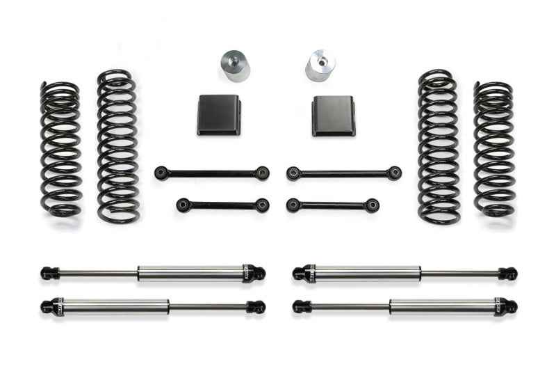 This Sport II lift kit is Fabtech?s most popular Gladiator system providing increased ride height and suspension performance at a great price. Installation is easy and can be installed in a couple hours. The Sport II features American made front and rear coil springs that are a dual rate design allowing extended suspension travel for offroad use while providing a smooth highway ride. The first stage of the spring provides a soft ride with the ability to extend for additional travel. The second stage is designed to handle the payload of the Gladiator and address large impact absorption at higher speeds. Four bump stops extensions utilize the factory bump stops for compliant cushioning at full compression. The extensions retain the stock down travel to eliminate over cycling of the suspension and driveline. The extended length front and rear sway bar links with urethane bushings reposition the bars to work within the factory operating planes. By extending the length of the links, it prevents the sway bar from going over center and creating bind at full extension travel. The stainless steel Dirt Logic shocks will provide additional damping capacity for offroad use with a supple on road ride quality. This Gladiator lift kit is an excellent choice for the Jeep enthusiast that wants to run larger tires with enhanced offroad capability and a good highway ride. WHAT?S IN THE SYSTEM: Front & Rear Dual Rate Coil Springs. Front & Rear Sway Bar Links. Front & Rear Bump Stop Brackets. Free 5 Year 60,000 Mile Powertrain Warranty.