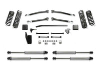 This Trail Lift Kit provides enhanced suspension performance to address all variants of off highway travel use including rock crawling, aggressive trail use and overland expeditions. This Gladiator lift kit has been tuned with proper dual rate coil springs and shock valving to provide a very compliant ride that you will appreciate. The system is a complete short arm suspension that utilizes the factory lower control arm mounts for an easy installation. The Fabtech lower link arms are constructed of thick wall steel tubing that are guaranteed never to bend. They come with large polyurethane bushings on one end with internal threads on the other to accept the groundbreaking Fabtech 5 Ton Joint? for longevity and a quiet ride. Fabtech?s dual rate Gladiator coil springs are corner specific to the Jeep JT. This keeps the vehicle level side to side and allows for increased suspension travel. The first stage of the spring provides a soft ride with the ability to extend for additional travel. The second stage is designed to handle the payload of the vehicle and address large impact absorption at higher speeds. To address the steering geometry with the increased ride height, a Draglink Flip kit along with a heavy duty Track Bar bracket is included. This relocates the Gladiator steering geometry to the factory plane allowing for full articulation without binding the draglink ends in extreme conditions. The rear Gladiator suspension receives a heavy duty Track Bar bracket to center the axle under the vehicle with the new ride height and help retain the factory roll center of the vehicle. Front and rear bumps stop extensions protect the Jeep Gladiator suspension from over cycling. This popular Jeep Gladiator lift kit is a top choice for daily drivers that enjoy tackling tough trails and overlanding with the comfort that they have a high quality complete suspension under their Gladiator. FEATURES: CONTROL LINK ARMS - Proper factory bushing cross bolt angles are parallel
