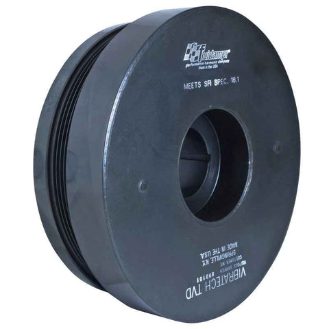 Serious power requires a serious damper. Protect your truck?s engine with the technology preferred by heavy duty diesel OEMs. Superior viscous damper design controls harmful torsional vibration across the entire rpm range. Reduce wear on engine components. Reduce risk of crankshaft failure. Improve timing. Unleash lost torque and horsepower. Competition built precision CNC machined and balanced high-grade steel components. Corrosion resistant black zinc finish with engraved timing marks. No maintenance required. Trusted by leading performance diesel engine builders worldwide. SFI 18.1 certified. Made in USA.