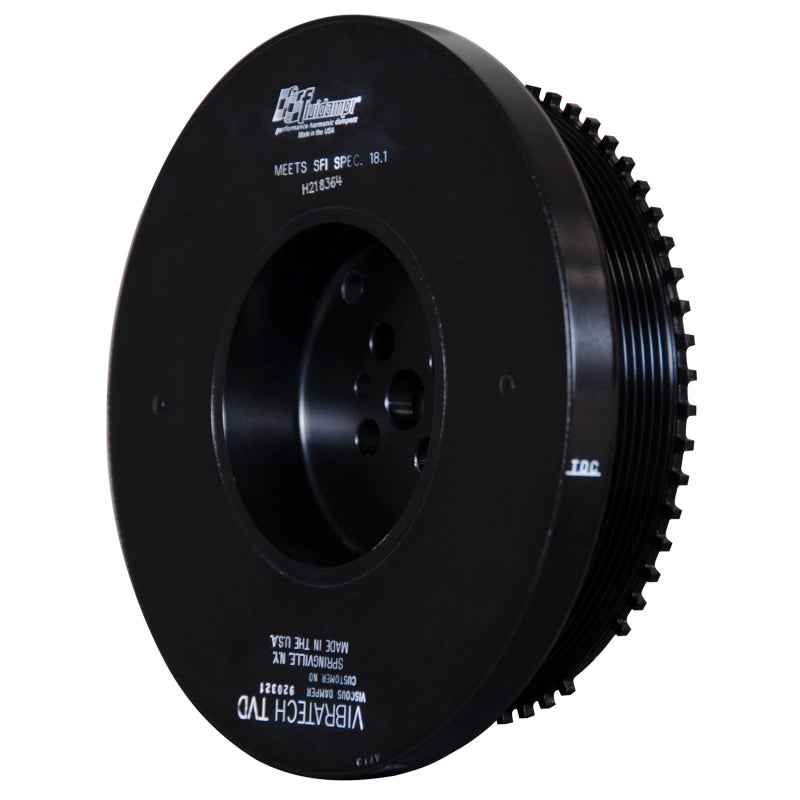 Serious power requires a serious damper. Protect your truck?s engine with the technology preferred by heavy duty diesel OEMs. Superior viscous damper design controls harmful torsional vibration across the entire rpm range. Reduce wear on engine components. Reduce risk of crankshaft failure. Improve timing. Unleash lost torque and horsepower. Competition built precision CNC machined and balanced high-grade steel components. Corrosion resistant black zinc finish with engraved timing marks. No maintenance required. Trusted by leading performance diesel engine builders worldwide. SFI 18.1 certified. Made in USA.