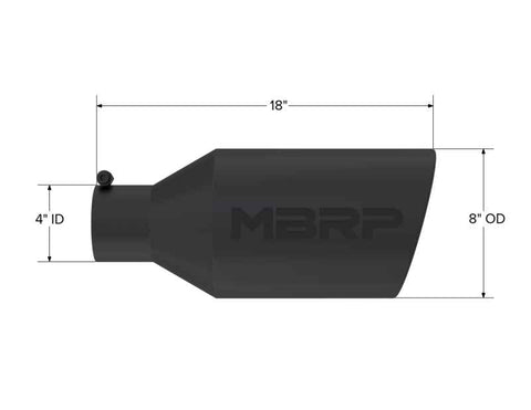 ”” MBRP Universal Tip 8in O.D. Rolled End 4in inlet 18in length Black