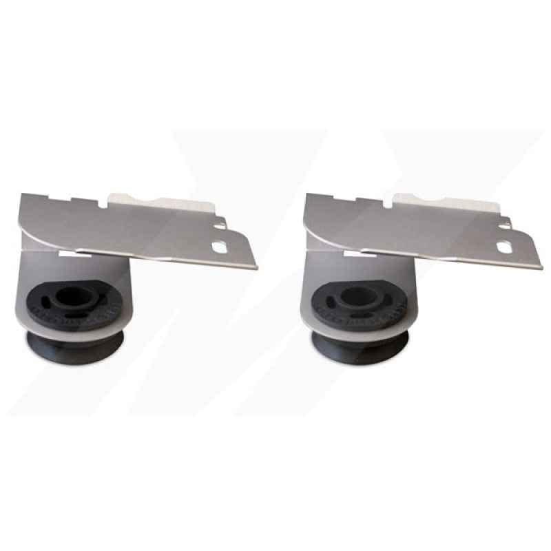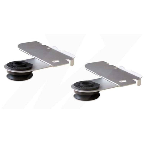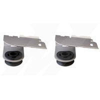 Mishimoto has developed Ford Mustang aluminum radiator stays to replace the OEM upper radiator brackets.These are a must have for any Mustang owner looking to install an aftermarket radiator.The stock OEM Ford brackets have a rigid design that does not allow them to bend and move in harmony with the Mustang's uni-body when it is being torqued under hard driving conditions.These forces combined with the Mustang's rigid upper radiator brackets cause performance aluminum radiators to crack and leak.The Mishimoto Ford Mustang radiator stays are made out of thin gauge aluminum and use a softer rubber bushing, allowing the bracket to bend and move with the radiator, thus preventing damage.Designed to fit both OEM and aftermarket radiators.Made in USA