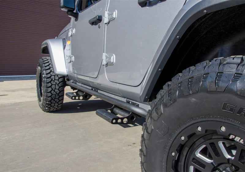 RKR Step System - Full Length (1 Step Mount/1 Step per Side) - 1.75 in. Rails - 2018-2019 Jeep Wrangler JL 4-Door - Textured Black