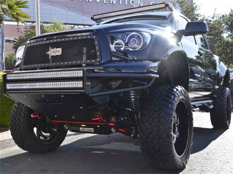 RSP PreRunner Replacement Front Bumper - Direct Fit (2-38" Rigid E-Series) - with Skid Plate - LED Light Mount - 2007-2013 Toyota Tundra - Gloss Black