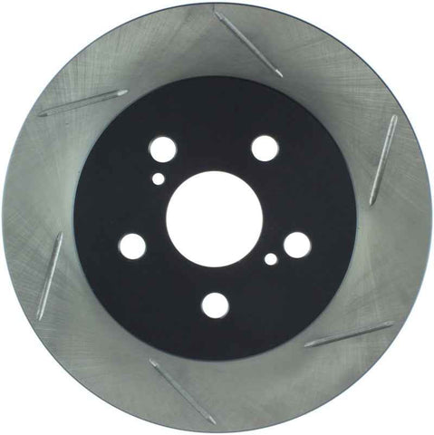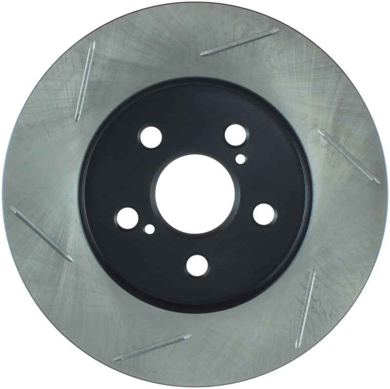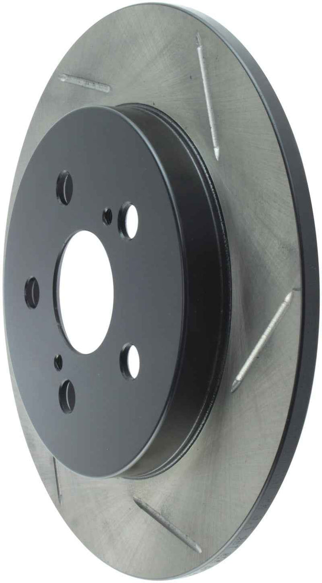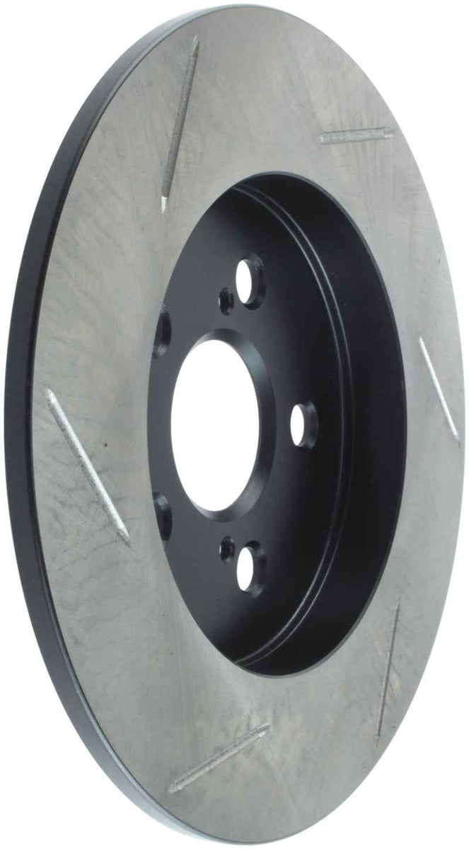 StopTech Slotted Sport Rotors are 1-piece direct replacement brake discs for factory brake systems and stock calipers that look great behind your wheels – and offer significantly improved braking performance. The unique slotting aids with heat and brake dust dispersal, prevents glazing of the pads, adds bite and improves wet and dry braking performance. Built to last, the black e-coating provides protection from corrosion and the high carbon metallurgy (in most applications) offers quieter operation, better crack resistance and increased performance.