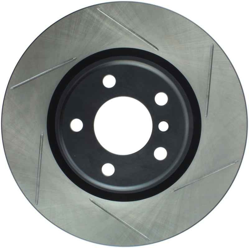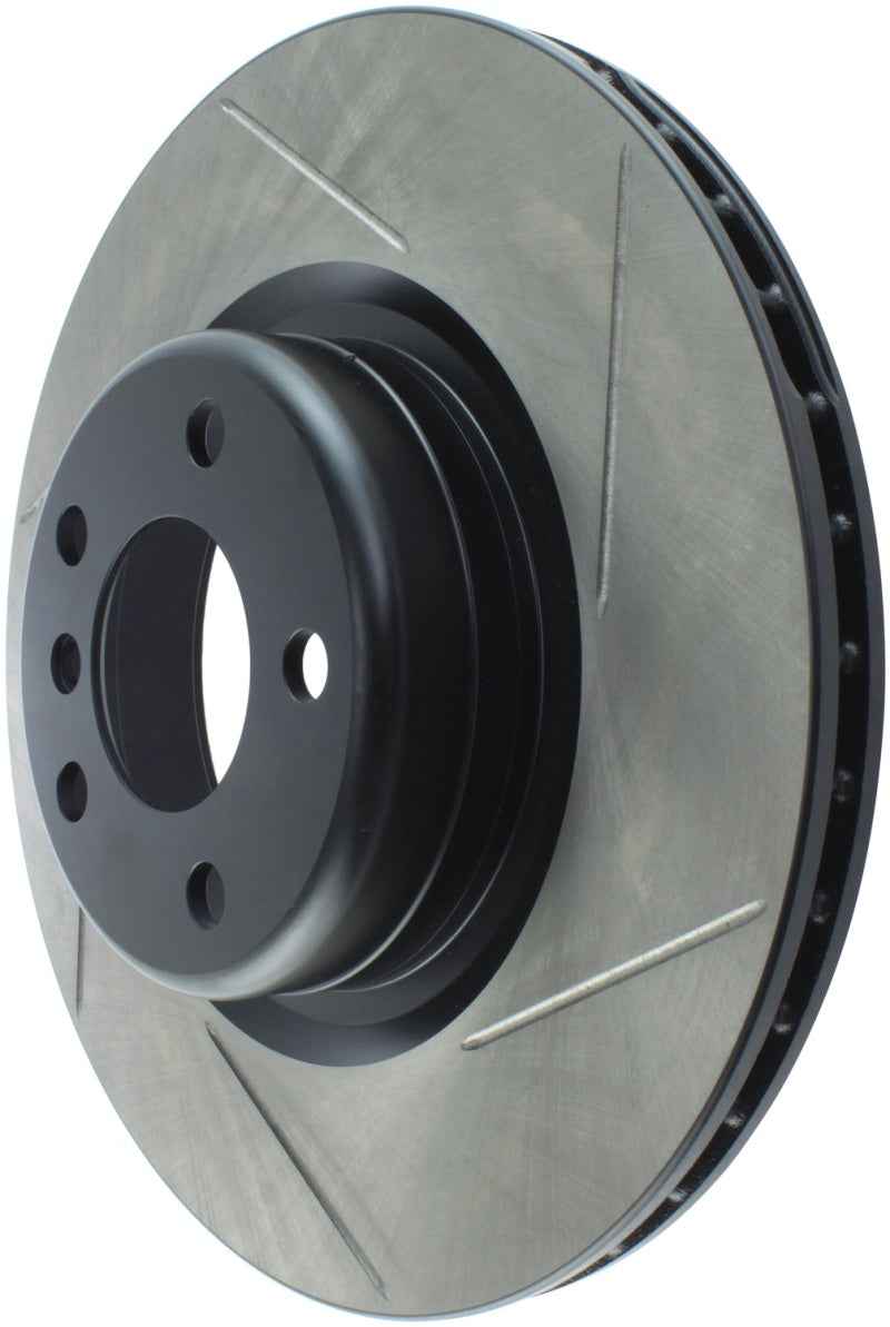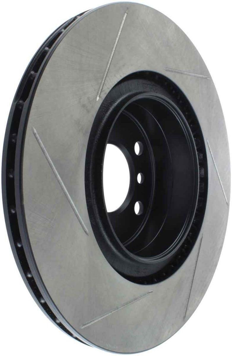 StopTech Slotted Sport Rotors are 1-piece direct replacement brake discs for factory brake systems and stock calipers that look great behind your wheels – and offer significantly improved braking performance. The unique slotting aids with heat and brake dust dispersal, prevents glazing of the pads, adds bite and improves wet and dry braking performance. Built to last, the black e-coating provides protection from corrosion and the high carbon metallurgy (in most applications) offers quieter operation, better crack resistance and increased performance.