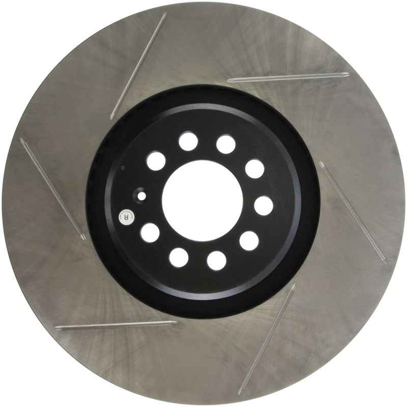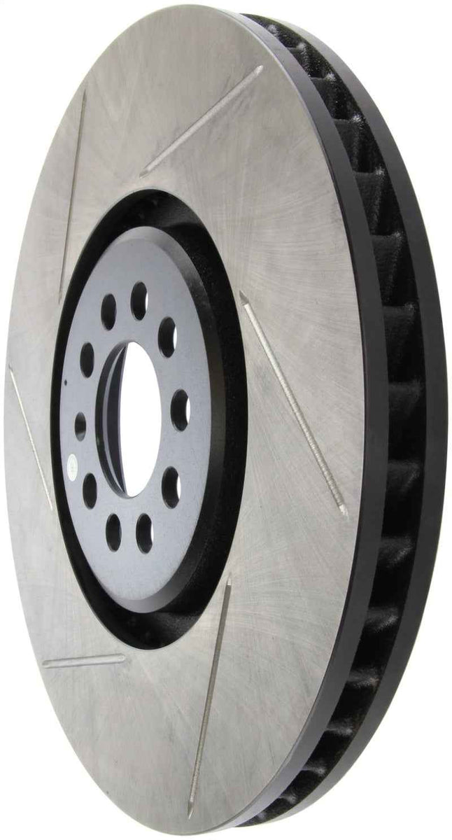 StopTech Slotted Sport Rotors are 1-piece direct replacement brake discs for factory brake systems and stock calipers that look great behind your wheels – and offer significantly improved braking performance. The unique slotting aids with heat and brake dust dispersal, prevents glazing of the pads, adds bite and improves wet and dry braking performance. Built to last, the black e-coating provides protection from corrosion and the high carbon metallurgy (in most applications) offers quieter operation, better crack resistance and increased performance.