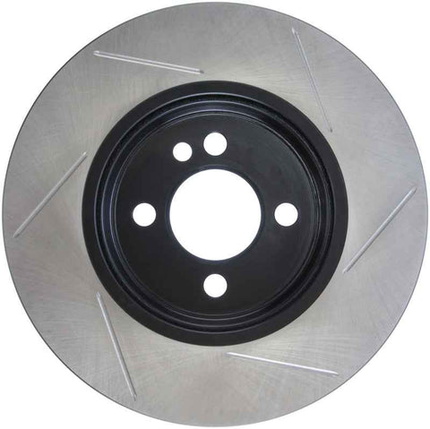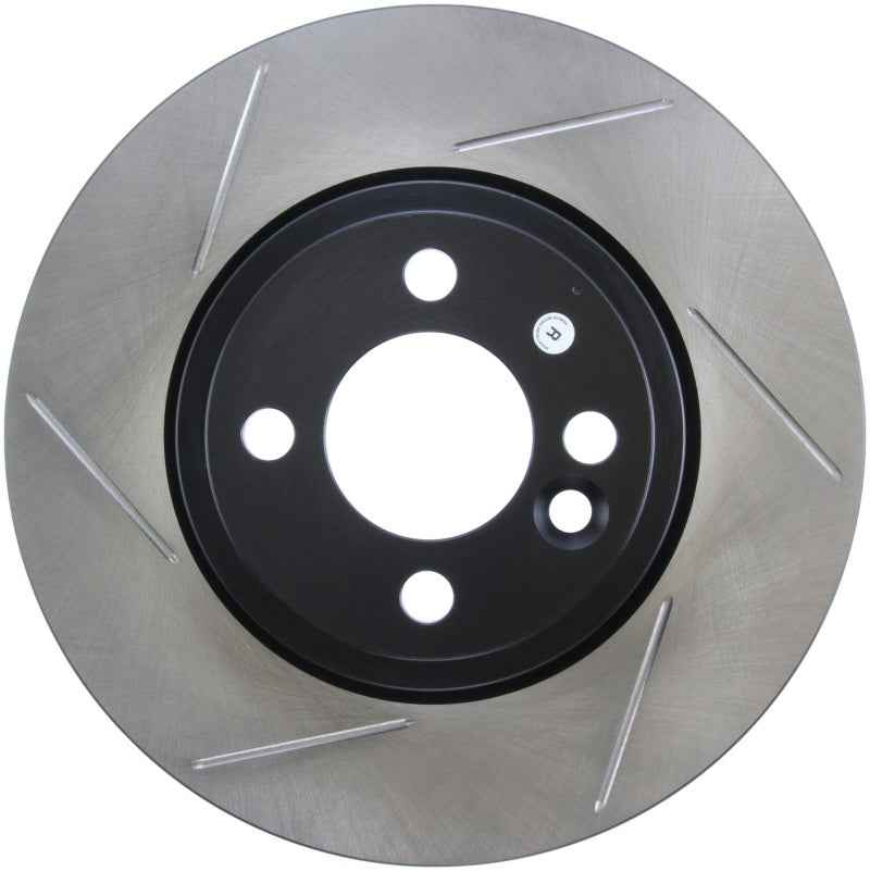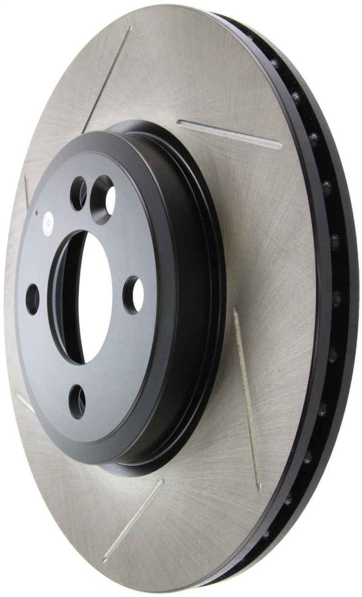 StopTech Slotted Sport Rotors are 1-piece direct replacement brake discs for factory brake systems and stock calipers that look great behind your wheels – and offer significantly improved braking performance. The unique slotting aids with heat and brake dust dispersal, prevents glazing of the pads, adds bite and improves wet and dry braking performance. Built to last, the black e-coating provides protection from corrosion and the high carbon metallurgy (in most applications) offers quieter operation, better crack resistance and increased performance.