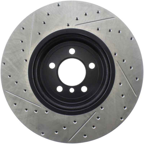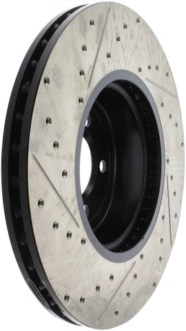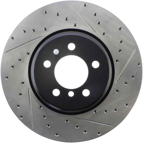 StopTech Drilled and Slotted Sport Rotors are 1-piece direct replacement brake discs for factory brake systems and stock calipers that look great behind your wheels – and offer significantly improved braking performance. The unique cross-drilling and slotting aids with heat and brake dust dispersal, prevents glazing of the pads, adds bite and improves wet and dry braking performance. Built to last, the black e-coating provides protection from corrosion and the high carbon metallurgy (in most applications) offers quieter operation, better crack resistance and increased performance.