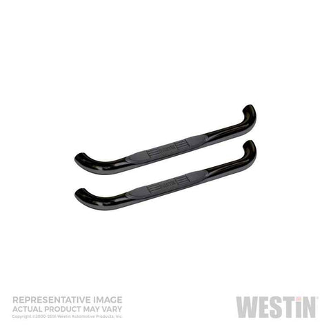 Westin(TM) E-Series Nerf Bars are made of 3in. diameter round tubing and are vehicle specific designs. Step design and mounting technique varies by application (mounting kit included). They feature recessed area mounted step pads unique to E-Series Nerf Bars feature the Westin(TM) brand name and are UV resistant.