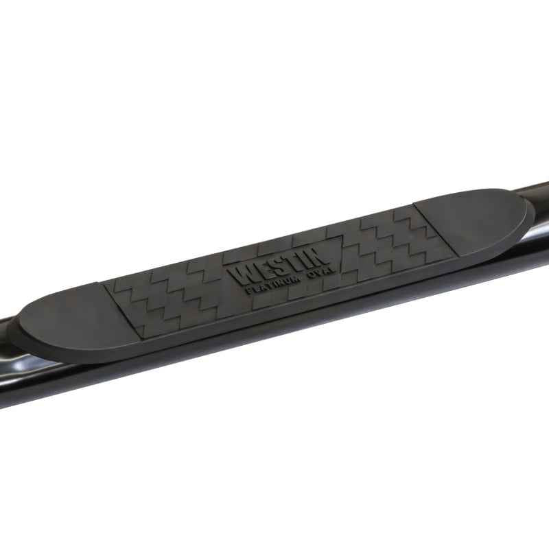 Westin's Platinum 4 Oval Nerf Step Bars feature OE styling and offer an alternative look and style to traditional round tube steps. Their larger size provides strength and confidence with a full 4" wide recessed step area. Platinum 4 Oval Nerf Step Bars are vehicle specific applications that feature a no-drill installation.