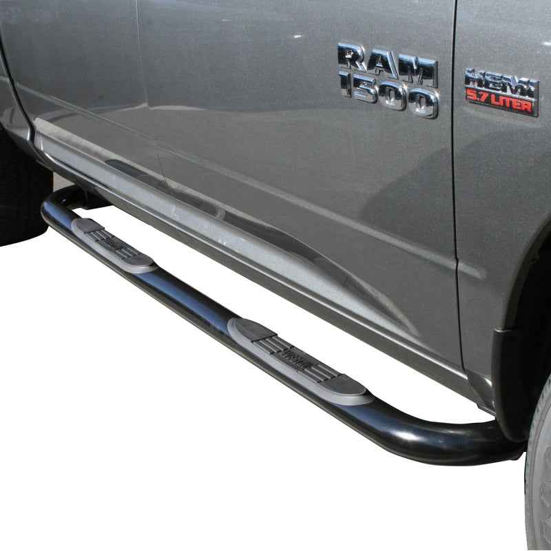 E-Series 3 in. Round Step Bar Cab Length; Dual Step Pad; Black; Steel; Mount Kit Included;
