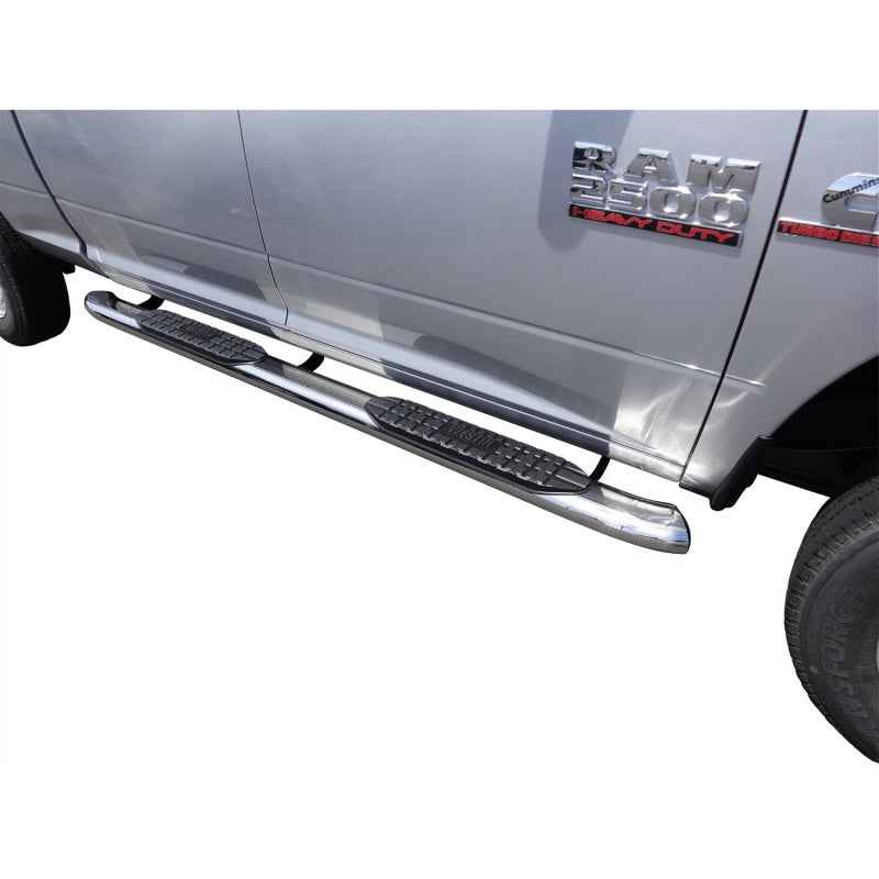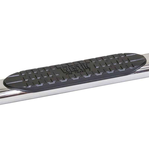 5 Pro Traxx Oval Tube Step Bars by Westin?. With Rocker Panel Mount. Add style and functionality to your truck with these easily installed oval tube step bars. The powder coated black or polished 304 stainless steel finish and angled ends with fully welded caps will enhance the appearance of any truck while the 5 textured logo step pads give you sure footing to ease cab access. The included mount kit includes everything required for installation including zinc plated stainless steel hardware and detailed instructions.
