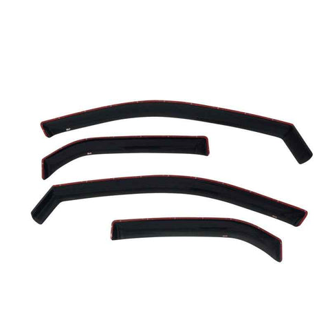 Wade In-Channel Wind Deflectors are a quick and quality solution to reducing wind, noise, heat, and glare without compromising the entry of fresh air when windows are rolled down slightly. They are easily installed by inserting the flanged edge into the directly window channel and secured with 3M automotive grade tape. Wade Wind Deflectors promote the circulation of fresh air while minimizing its volume and strength as it re-directs it up and into, or out of the vehicle. Their sleek design deflects wind and noise from entering the vehicle for a more pleasant ride any time of year. They are made from high-gloss smoke acrylic, and have transparency, so, visibility is never obstructed.