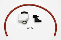 7.0 oz. remote reservoir kit for TM1 Master Cylinder. Contains: 30 inches 1/4" ID hose. Also contains 1 reservoir, 1 reservoir cap and 1 bracket for reservoir mount. 2 kits are required for 1 TM1 master cylinder assembly. Fluid supply hose is a specially designed for brake fluid use and will not swell or leak like other commonly used materials.