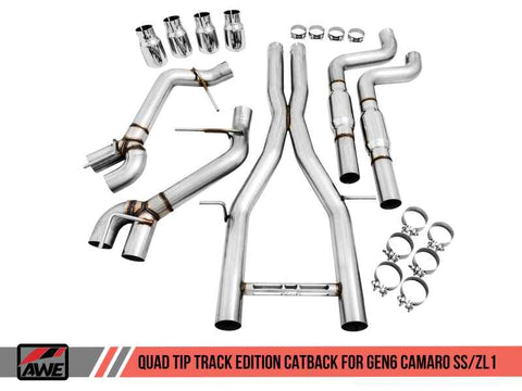 AWE Track Edition Cat-back Exhaust for Gen6 Camaro SS / ZL1 - Resonated - Chrome Silver Tips (Quad Outlet)
