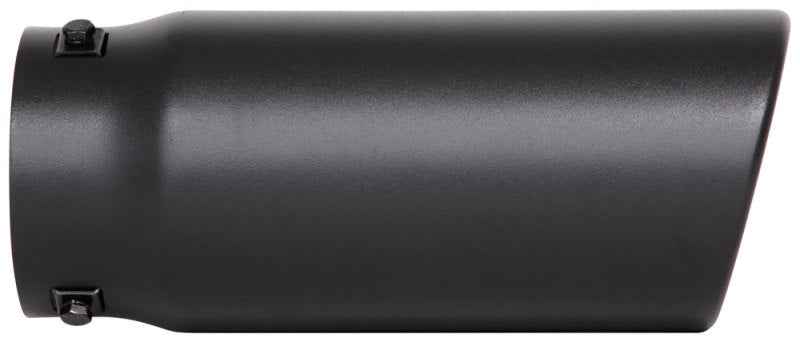 Spectre bolt-on universal exhaust tips are a great cosmetic add on for your exhaust system. Our universal stainless steel exhaust tips feature a black textured powdercoat finish for long lasting looks. The interior is resonated to further enhance the exhaust note. This exhaust tip is designed to fit 2.75 inch to 3.75 inch exhaust tubing and is held in place by the 3 mounting screws or can be tack welded. This exhaust tip also features an aggressive slant cut design with a 4.5 inch outside diameter body.
