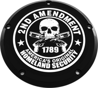 ”” PATR19-46BG CUSTOM ENGRAVING 7 M8 Flt/Flh Derby Cover 2a Black