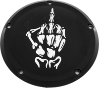 ”” SKUL24-46BG CUSTOM ENGRAVING 7 M8 Flt/Flh Derby Cover Bone Finger Black