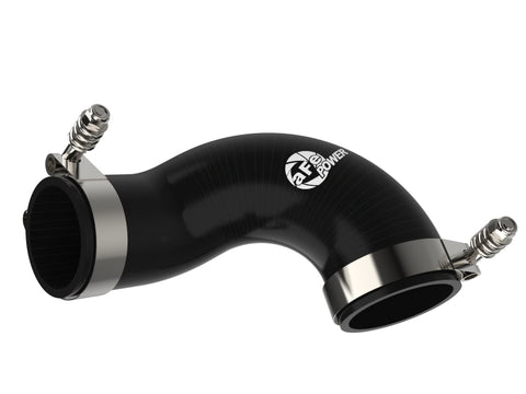 This oversized 2-1/4in OD Turbo Muffler Delete replaces the factory turbo muffler located between the turbo compressor outlet and the hot side charge pipe. The straight through oversized design tremendously increases flow and turbocharger sound by creating a smooth transition between the turbo and intercooler tube. CNC machined from 6061-T6 aluminum then finished in red anodizing also provides superior strength and long lasting durability. This turbo muffler delete kit includes high-quality, stainless-steel, spring-loaded T-bolt clamps and a heavy-duty, 5-ply, polyester reinforced silicone coupling for superior strength and durability. Finished with Red Anodizing and a unique laser-etched aFe Power logo for a custom look. Designed to work with aFe charge pipes (46-20414-B ) only. Will not work with the OE charge pipes.