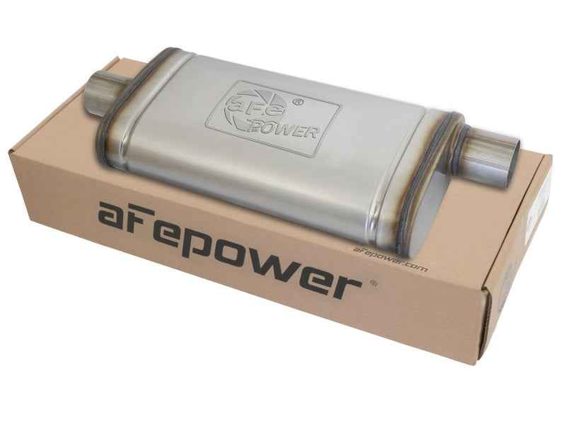 aFe MACHForce XP SS Muffler 2.5in Center Inlet / 2.5in Offset Outlet 18in L x 9in W x4in H Body Sale