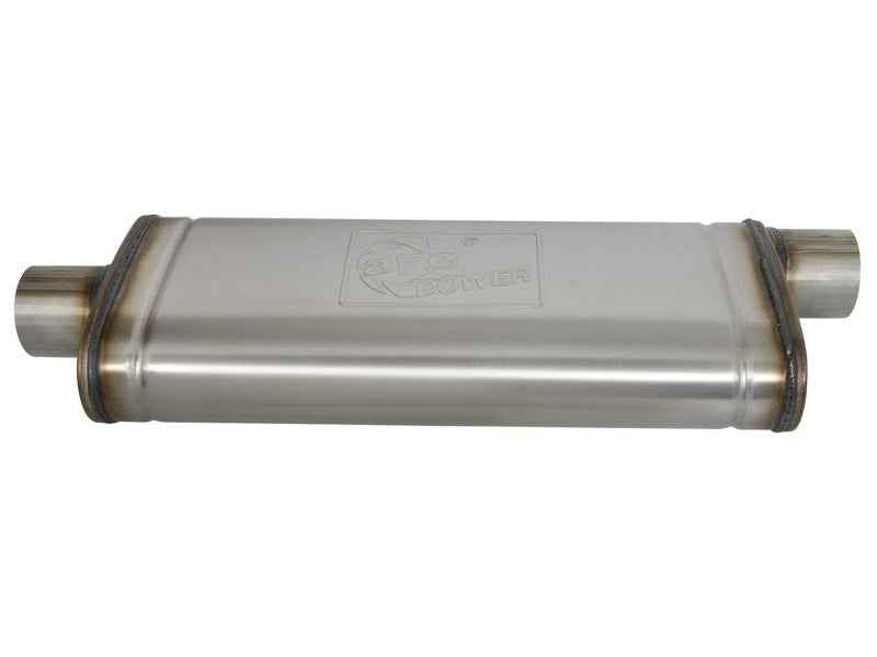 The aFe Universal fit 409 Stainless Steel Performance Muffler is designed to provide a deep, throaty, powerful sound on acceleration but maintain a smooth sound at idle. This muffler is constructed of brushed finished 409 stainless steel and uses a straight through perforated core with heat resistant packing to reduce backpressure and maximize exhaust flow. You will see increased performance and improved throttle response over the factory exhaust. Also featuring a stamped aFe Power logo for an aggressive style.