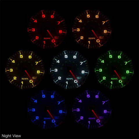 7 color user-selectable background illuminations (red, blue, green, white, yellow, orange, and violet) with adjustable brightness for day and night - with independent dimming of dial and pointer.