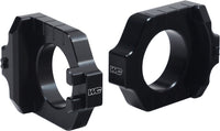 Consisting of a pair of CNC’d Elite axle blocks, a titanium drive-side receiver and a square removal tool nut, the Elite Axle Block Kit converts your stock Off-Road or Dual Sport model’s rear axle from a fixed design into a floating type. Factory teams use this same floating type design on their race team bikes to improve traction as well as straight line stability and now those same benefits are available from this kit. Another key component is the integrated receiver post on each axle block that allows the use of a caliper to precisely measure and match the left and right axle block’s position. This assures exact alignment of the chain and sprocket so critical to prolonging chain and sprocket life.