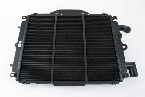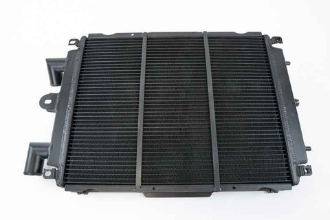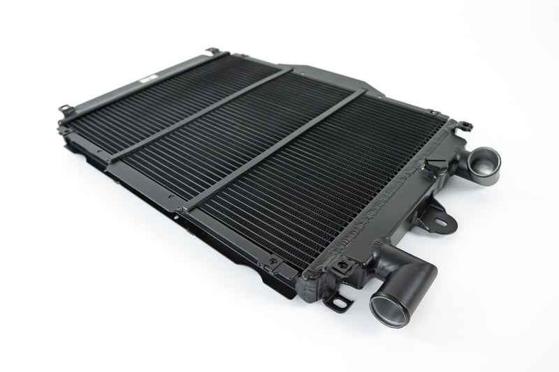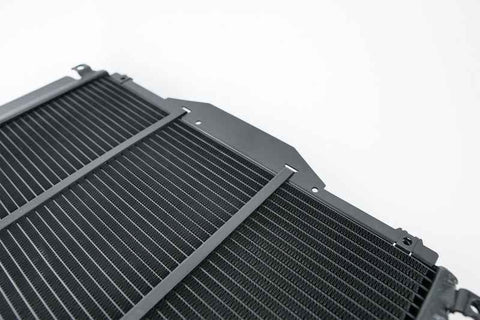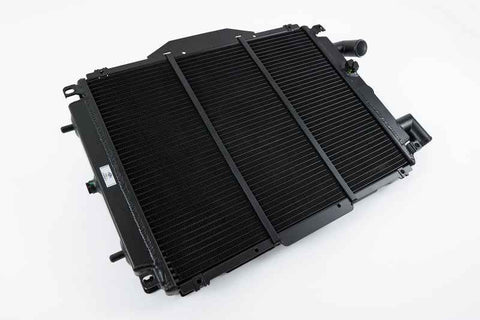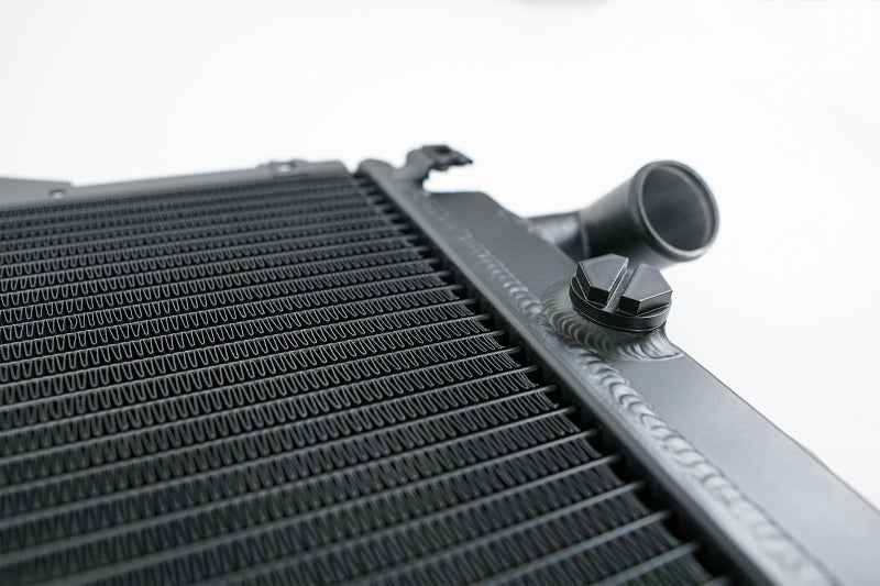 The CSF radiator features a 1-Row 31mm aluminum core that not only increases the fluid capacity of the radiator, but also improves the cores ability to dissipate heat. CSF?s Exclusive B-Tube Technology increases the heat transfer by approximately 15% over regular oval welded tubes. The 6.5mm super-efficient multi-louvered fins maximize airflow through the core for the best possible performance. In addition, CSF was able to fit 2 additional cooling tubes and rows of fins. The combination of TIG-Welded 100% All Aluminum construction and dual core straps increase the overall strength of the radiator. This improves durability and longevity so you can be confident it will hold up to hard driving conditions. Additionally, the satin black finish gives the radiator a clean OEM look and both radiators are a true Plug-and-Play ?Drop-in Fit? application.