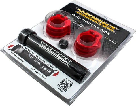 The Works Connection Elite Throttle Tube consists of a CNC machined aluminum throttle tube and six Delrin® snap on cam pulleys. The incorporation of a sealed bearing inside the end of the tube and an internal polymer bushing combine to create buttery smooth throttle action. Designed to match the OEM/stock pull ratio, the cams included in the kit cover the complete line of MX and Off-Road, Race 4-Stroke models from Honda, Husqvarna, Kawasaki, KTM, Suzuki and Yamaha.