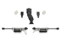 2019 Ford F450/F550 4WD. Obtain increased control of oversized tires and wheels with Fabtech's Dirt Logic 2.25 Dual Steering Stabilizer kit. This bolt on kit provides damping for the stock steering system of the vehicle to reduce tire shake caused by large tires both on and offroad. Steering stabilizers that are located on the front axle can take a beating from rocks and road debris causing small chips in the stabilizer body and piston rod that lead to rust. The Dirt Logic 2.25 stabilizers feature stainless steel bodies and NitroSteel piston rods for maximum corrosion resistance. No other steering stabilizer has these high quality materials. Features: Provides increased damping to the stock steering when using large tires. Dual Stabilizers are mounted opposing for maximum tire control. Stainless steel bodies and NitroSteel piston rods provide maximum corrosion resistance. Bolt on installation. Dual Dirt Logic Resi Steering Stabilizer (Opposing Style).