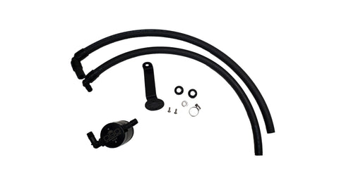 During the process of venting crankcase pressure back through your intake track, large amounts of oil, in the form of vapors can gather/accumulate in your intake tube, intake manifold runners and even dilute your gas, lowering its octane level. This happens on all engines and is even worse with forced inducted vehicles (supercharged and turbocharged) as crankcase pressures are increased. To combat this, we have developed an oil separator of our own design. Milled from solid billet aluminum this is a rock-solid piece. It has a knurled tank base for easy removal to drain the spent oil and an O-ring seal to prevent any leaks.