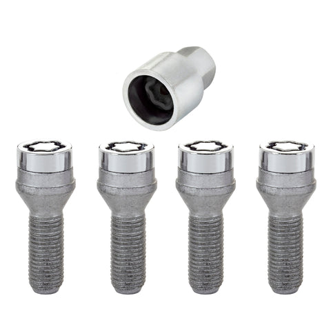 Chrome Bolt Style Cone Seat Wheel Lock Set (M14 x 1.5 Thread Size) - Set of 4 Locks and 1 Key