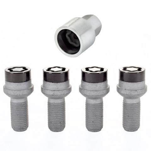 Black Bolt Style Radius Seat Lock Set (M14 x 1.5 Thread Size) - Set of 4 Locks and 1 Key