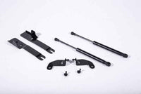 The ROUSH hood strut kit for Mustangs open the hood at a greater angle, without having to manually prop the hood open. Calibrated extension dampening allows the hood to open and rise automatically and provides a better view of the entire engine compartment. ROUSH hood struts use your factory OEM attachment points and require no drilling to install. The kit contains black e-coated stainless steel brackets with the ROUSH logo laser etched into the brackets and heavy duty gas-charged struts. ROUSH Mustang hood struts fit all V6, Ecoboost and GT models. These gas-charged struts are designed and engineered to work with the factory hood design and weight.