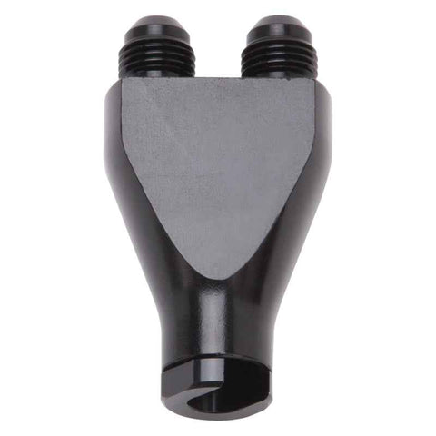 Fuel Block Billet Y Fuel Block; Black; 3/8 SAE Quick Disconnect Female To -6AN [Dual] Male Flare;