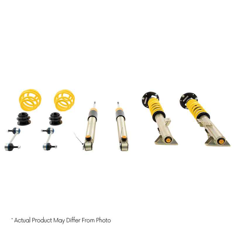 Looking for maximum performance for your car? Our adjustable ST XTA Coilover kits are the upgrade you need. All ST XTA systems are delivered with a linear race springs system, adjustable dampers, and aluminum unibal camber adjustable top mounts. ST XTA Coilover kits deliver precise adjustment to your ride height so you control the look of your car. We manufacture the adjustable spring perch made of durable and friction-optimized polyamide composite material with a stainless steel insert. Thanks to the composite material corrosion is prevented between the strut and perch ensuring long lasting height adjustability while the stainless steel insert provides strength and confidence! ST XTA Coilovers come preset to our factory recommended damper settings, the same configuration we test them at on our KW shock dynos before they go into your box. The 16 distinct clicks of adjustable rebound damping allow you to refine the driving dynamics with a simple turn of the adjustment knob. Each kit includes a detailed damper setup manual making it easy to reset to our recommended setting at any time. Whether your preference is comfort, performance, or something in between; ST XTA puts the finer details of the driving dynamics in your hands. The top mounts included with our ST XTA Coilover kits allow you to adjust the camber at the front axle to dial in aggressive wheel and tire fitment. They also allow you to maximize the tire's contact patch for driving in fast corners and any other driving scenario that demands maximum grip. Galvanized zinc coated steel struts optimize corrosion protection for long lasting use. We add a dust protection system to prevent unwanted dirt and particulate from coming in contact with the hardened chrome piston rod or getting into the valve packs. We reinforce the system with a multi-layered pressure resistant sealing package, mono block guide system and a low friction piston band which works inside the pressure resistant internal damper housing.