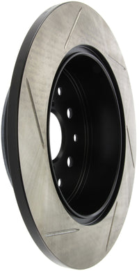 StopTech Slotted Sport Rotors are 1-piece direct replacement brake discs for factory brake systems and stock calipers that look great behind your wheels – and offer significantly improved braking performance. The unique slotting aids with heat and brake dust dispersal, prevents glazing of the pads, adds bite and improves wet and dry braking performance. Built to last, the black e-coating provides protection from corrosion and the high carbon metallurgy (in most applications) offers quieter operation, better crack resistance and increased performance.