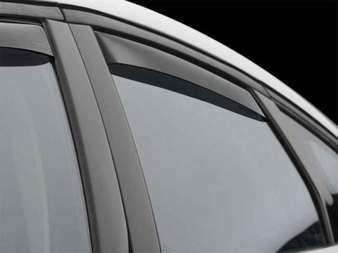 WeatherTech(R) Side Window Deflectors offer you fresh air enjoyment with an original equipment look. They are crafted in Germany from the finest 3mm lightly-tinted acrylic material available. Installation is quick and easy, with no exterior tape needed. WeatherTech(R) Side Window Deflectors are precision-machined to perfectly fit your vehicle. These low profile window deflectors help to reduce wind noise and allow interior heat to escape. Also available in dark tint for most vehicles. 3 year warranty.
